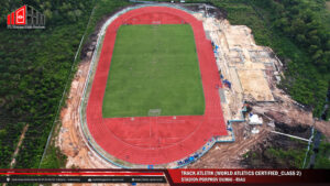 Termasuk yang kami kerjakan di Lintasan Lari Stadion Porprov Dumai, Secara Bahan sudah menggunakan material sandwich system yang telah bersertifikat dari World Atlethics, sehingga menjamin kualitas yang sesuai standar Federasi Atletik Dunia.